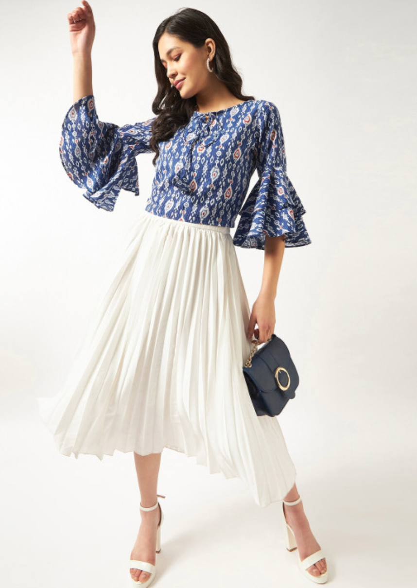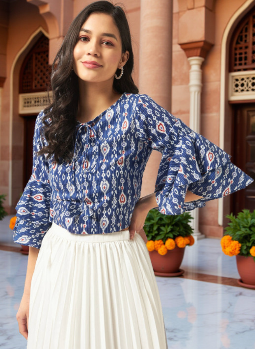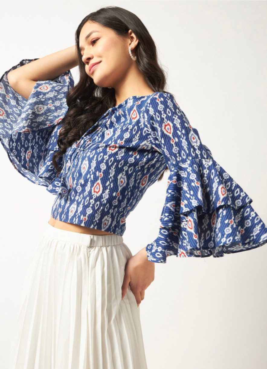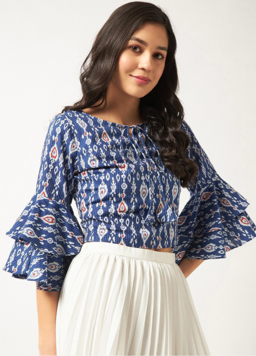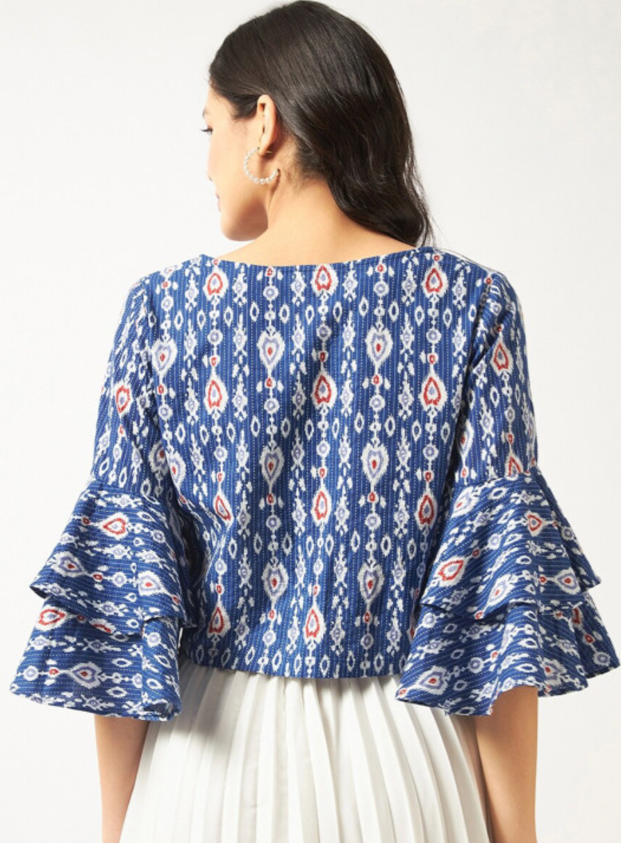 Ethnic Motifs Printed Bell Sleeve Cotton Top